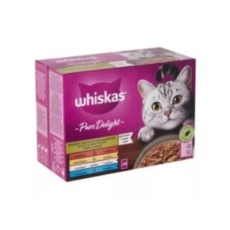 A WHISKAS Pure Delight alutasakos nedveseledel kifejezetten felnőtt macskák igényeire lett kialakítva, 1 éves kortól ajánlott. A gondosan összeállított húsos és halas ízválaszték változatos és ízletes étkezést kínál, amelyet a macskák szívesen fogyasztanak.