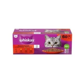 A WHISKAS alutasakos Klasszikus Válogatás gondosan összeállított nedveseledel felnőtt macskák számára, amely már 1 éves kortól ideális választás. A változatos ízekből álló receptúra ízletes húsdarabokat tartalmaz gazdag, szaftos szószban, amely ellenállhatatlan élményt nyújt minden falatban.